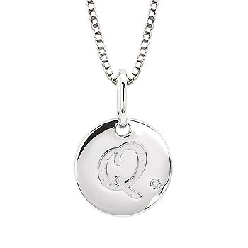 Diva Diamonds® Letter Q Pendant In Sterling Silver With .01 Ct. Diamond With 18" Box Chain (Adjustable To 16") And Lobster Claw Clasp Sterling Silver Diamond Initial Q Pendant with 16" Chain and 2" Extender