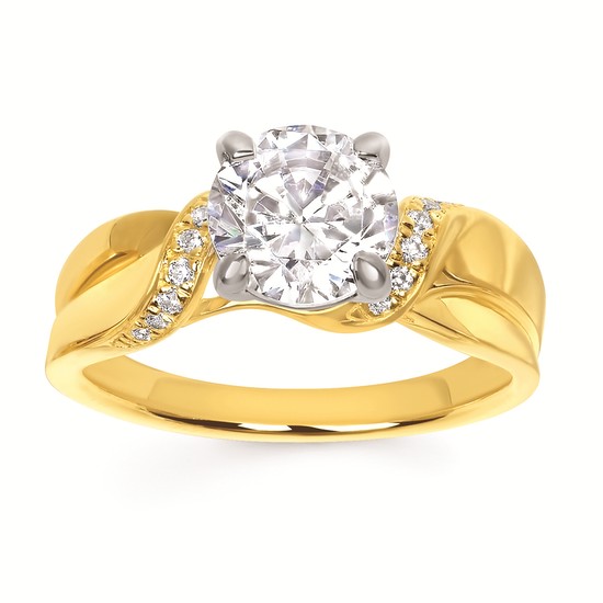 Engagement Ring Classic Bridal: 0.07 Ctw. Diamond Semi Mount shown with 1 1/2 Ct. Round Center Diamond in 14K Gold
