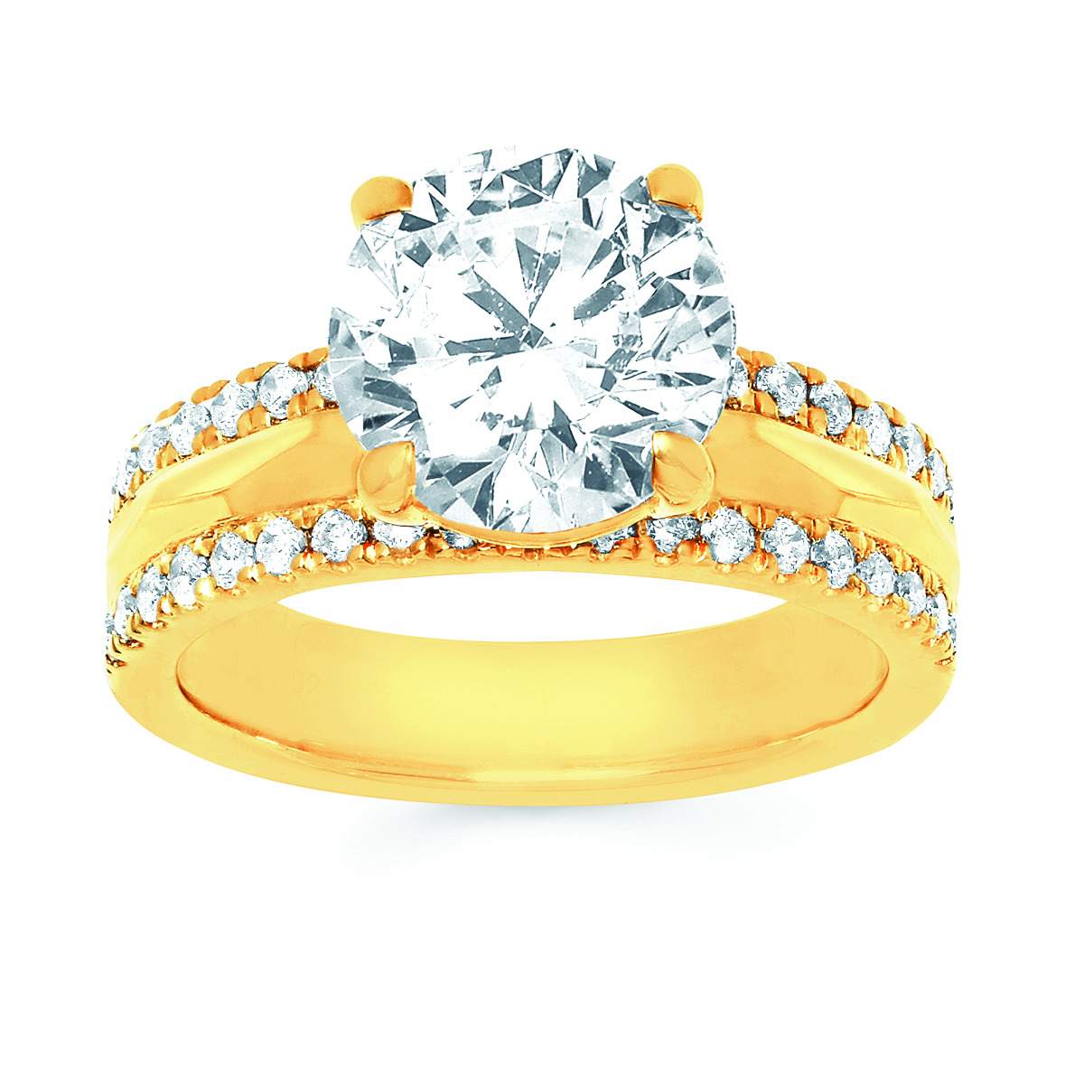 Engagement Ring Modern Bridal: 3/8Ctw. Diamond Semi Mount shown with 3 Ct. Round Center Diamond in 14K Gold