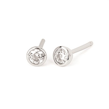 3.5 Mm White Sapphire Bezel Birthstone Stud Earrings