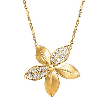 1/8 Ctw. Diamond Flower Necklace In 14K Gold With 18" Chain